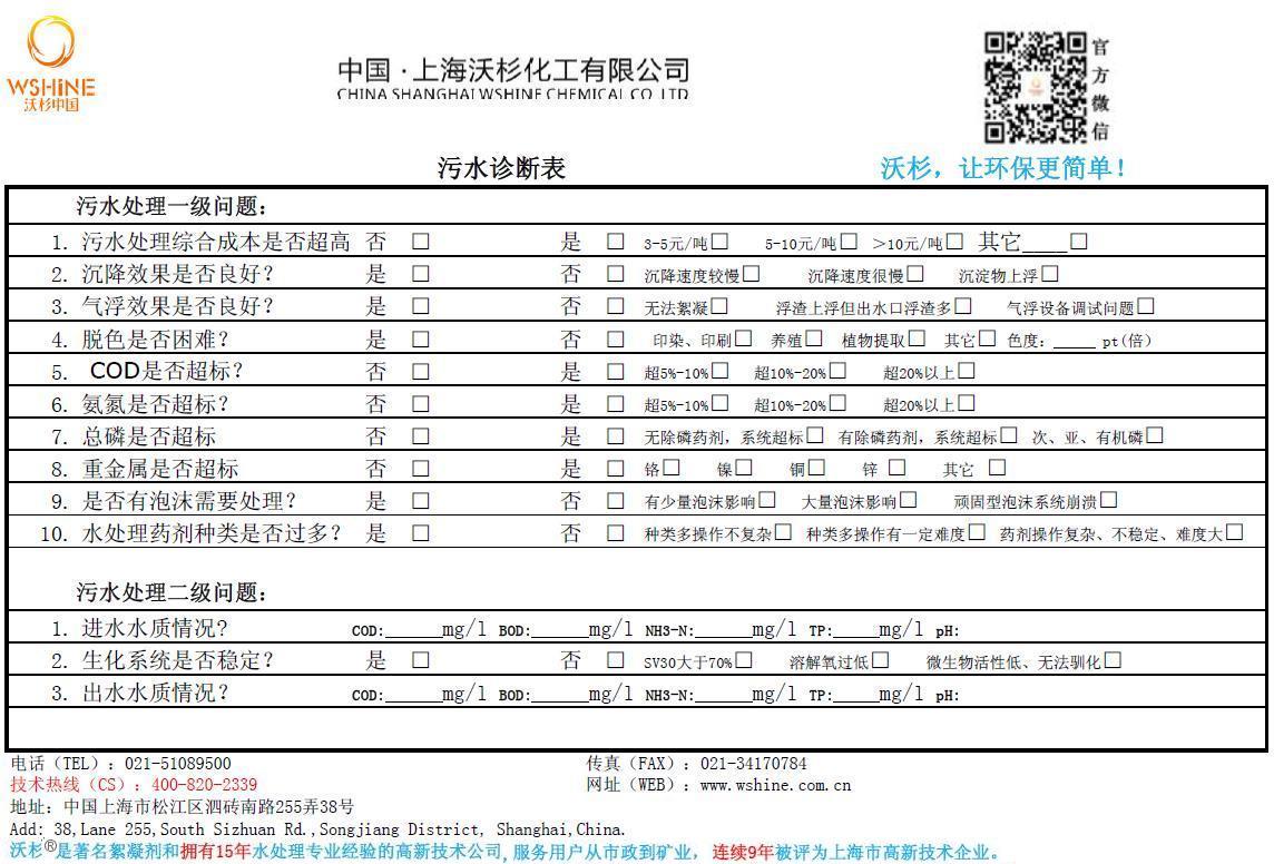 沃杉®污水处理技术诊断表